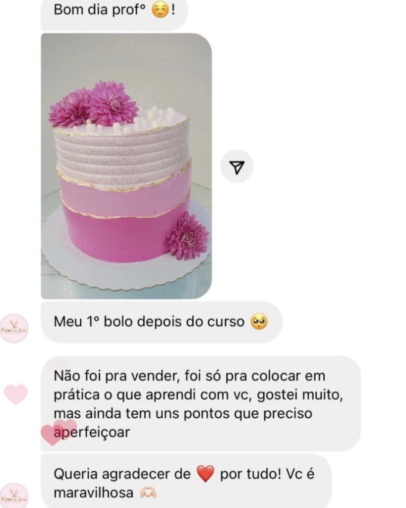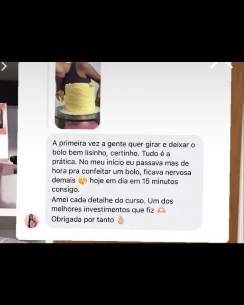 A Vanessa tinha muita dificuldade na hora do chantilly e nunca conseguia, depois de participar do treinamento, consegue fazer um bolo lindo em 15 minutos. ⬇️